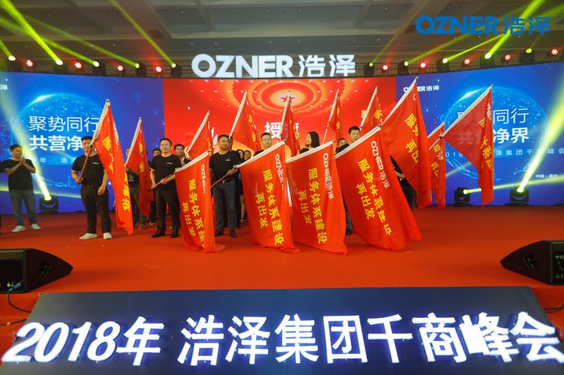 浩泽作为一家提供全天候安全饮用水服务解决方案的公司,对服务质量有着极高的要求。为进一步深化服务,浩泽再次重申“服务体系再出发”文化,强调人人都是服务专员,要将服务理念贯彻至日常决策的每一个环节中。千商峰会上,浩泽进行了全员参与“服务体系建设再出发”授旗仪式。